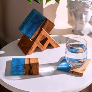Epoxy Coasters with Holder, Resin Coasters, Personalized Gifts, Wood Coasters with Holder, Cute Coasters, Housewarming Gifts, Christmas Gift